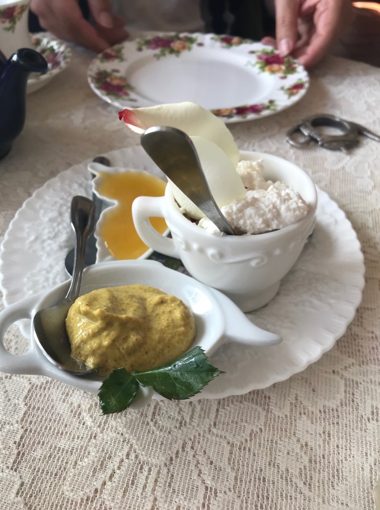I also perused the items for sale, from homemade granola, honey, and darling tea time jewelry. I ended up purchasing two handcrafted tiny plate earrings and they were willing to let me mix and match with a set of a teacup and plate earrings! I’m definitely going to wear these on our next tea time.