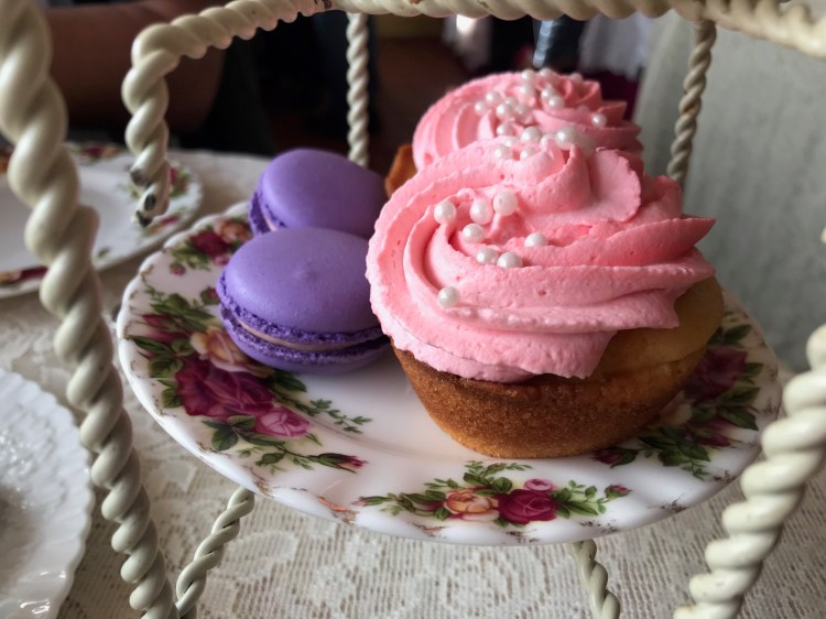 Our high tea also included savory curry chicken and cucumber sandwiches, spanokopita, sweet and soft scones with lemon curd and jam, strawberries, cupcakes, and lavender-hued macarons that matched the color of my dress! All of the items were melt-in-your-mouth delicious. I tried my best to savor all of the flavors while eating each one.